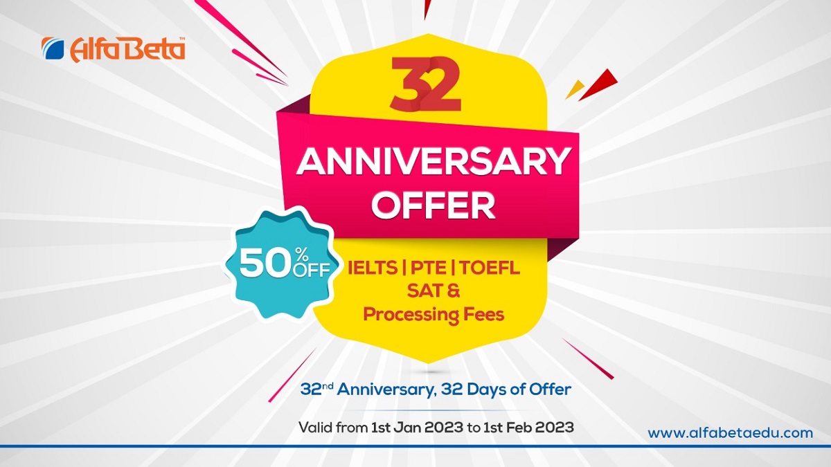 अल्फाबिटाले आफ्नो स्थापनाको ३२ वर्ष पूरा भएको अवसरमा वार्षिकोत्सव अफर ल्याएको छ।