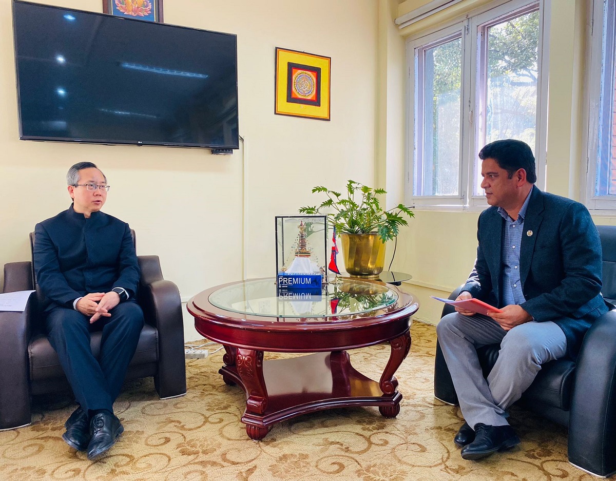 उद्योग, वाणिज्य तथा आपूर्तिमन्त्री दामोदर भण्डारी र नेपालका लागि चिनियाँ राजदूत चेन सोङबीच आज शिष्टाचार भेटवार्ता भएको छ।