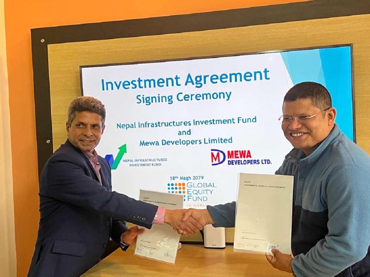 नेपाल इन्फ्रास्ट्रक्चर्स इन्भेस्टमेन्ट फण्ड लिमिटेडले मेवा डेभलपर्स लिमिटेडमा लगानी गरेको छ।