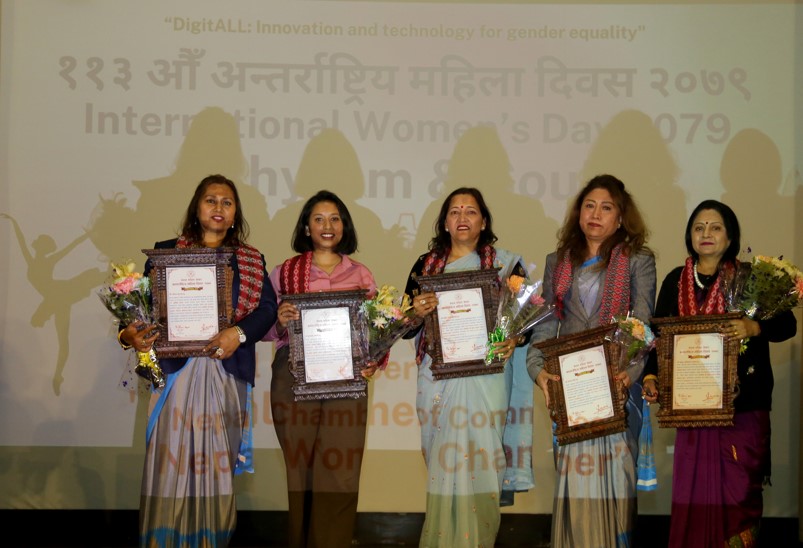 नेपाल महिला चेम्बरले ११३ औं अन्तरराष्ट्रिय महिला दिवसको अवसरमा विभिन्न उद्यमी महिलालाई सम्मान गरेको छ।