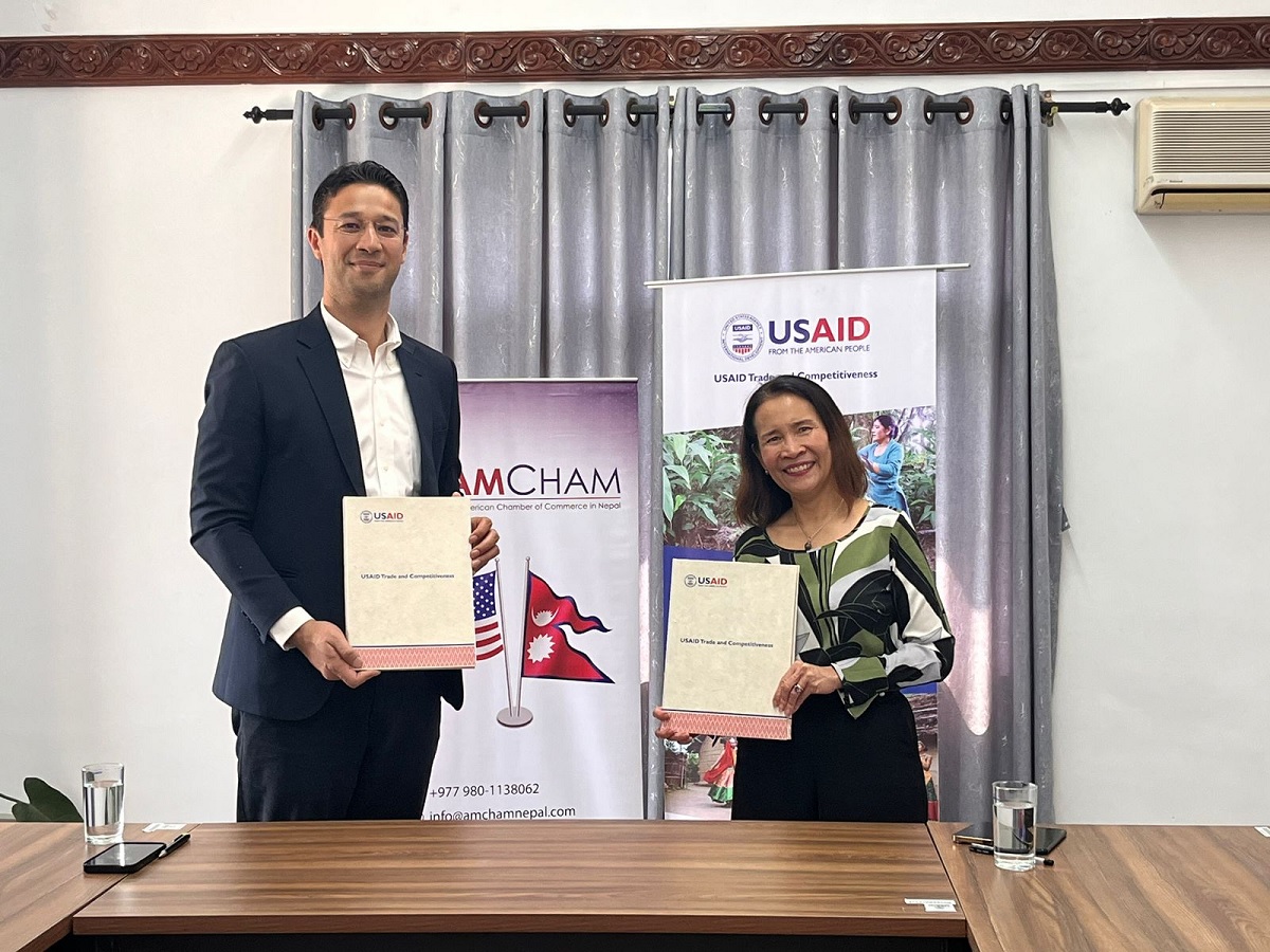 अमेरिकन चेम्बर अफ कमर्स नेपाल (एमच्याम) र युएसएड ट्रेड एण्ड कम्पिटिटिभनेस नेपालबीच व्यवसाय विस्तारमा सहजीकरणका लागि सहकार्य गर्ने सम्झौता भएको छ।