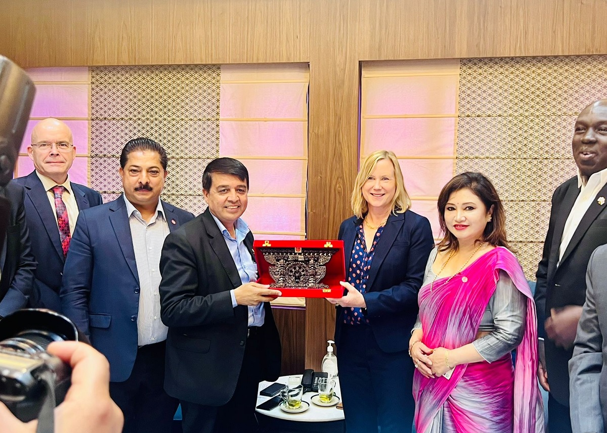 नेपाल उद्योग वाणिज्य महासंघका अध्यक्ष चन्द्रप्रसाद ढकाल र अन्तर्राष्ट्रिय वित्त निगमका उपाध्यक्ष सुसन लनबीच मंगलबार महासंघ सचिवालयमा औपचारिक भेटवार्ता भएको छ।