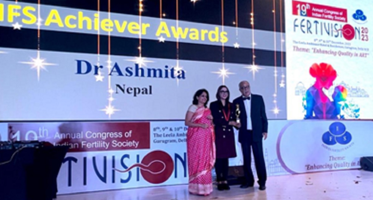वात्सल्य आइभिएफ सेन्टरकी युवा प्रजनन रोग विशेषज्ञ डा. अस्मिता पाण्डेले प्रतिष्ठित अन्तर्राष्ट्रिय एवार्ड हात पारेकी छन्।
