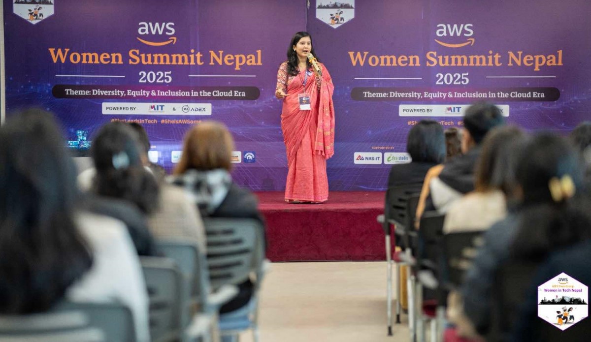 अन्तर्राष्ट्रिय महिला दिवसका सन्दर्भमा एडब्लुएस युजर ग्रुप वुमन इन टेक नेपालले काठमाडौं मोडल कलेजमा आयोजना गरेको सम्मेलनमा क्लाउड प्रविधिमा महिलाहरूको सहभागिता बढाउँदै डिजिटल युगमा समावेशिता र नवीनता प्रवर्द्धनमा जोड दिइयो।