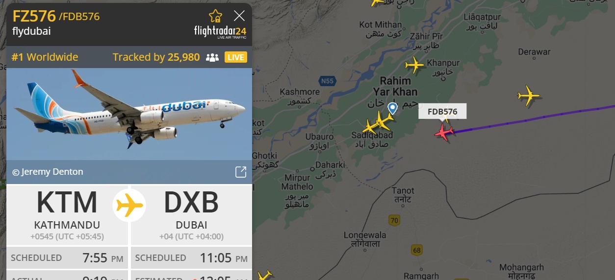 फ्लाई दुबईको जहाजमा चरा ठोक्किएको भनेर भ्रम फैलाएको आरोपमा दुई जना कारबाहीमा परेका छन्।