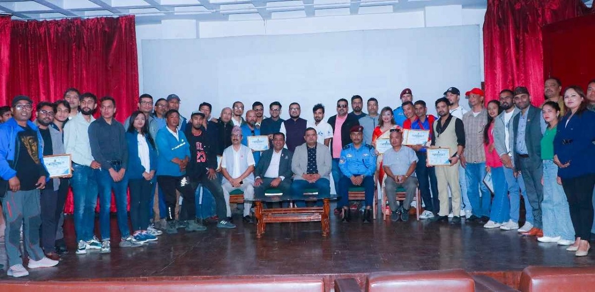 ४४ औं अन्तर्राष्ट्रिय पर्यटन दिवसका अवसरमा गरिएको 'गोल्डेन ट्रयाङ्गल बाइक टुर' राइडर्सलाई प्रमाणपत्र दिएर समापन गरिएको छ।