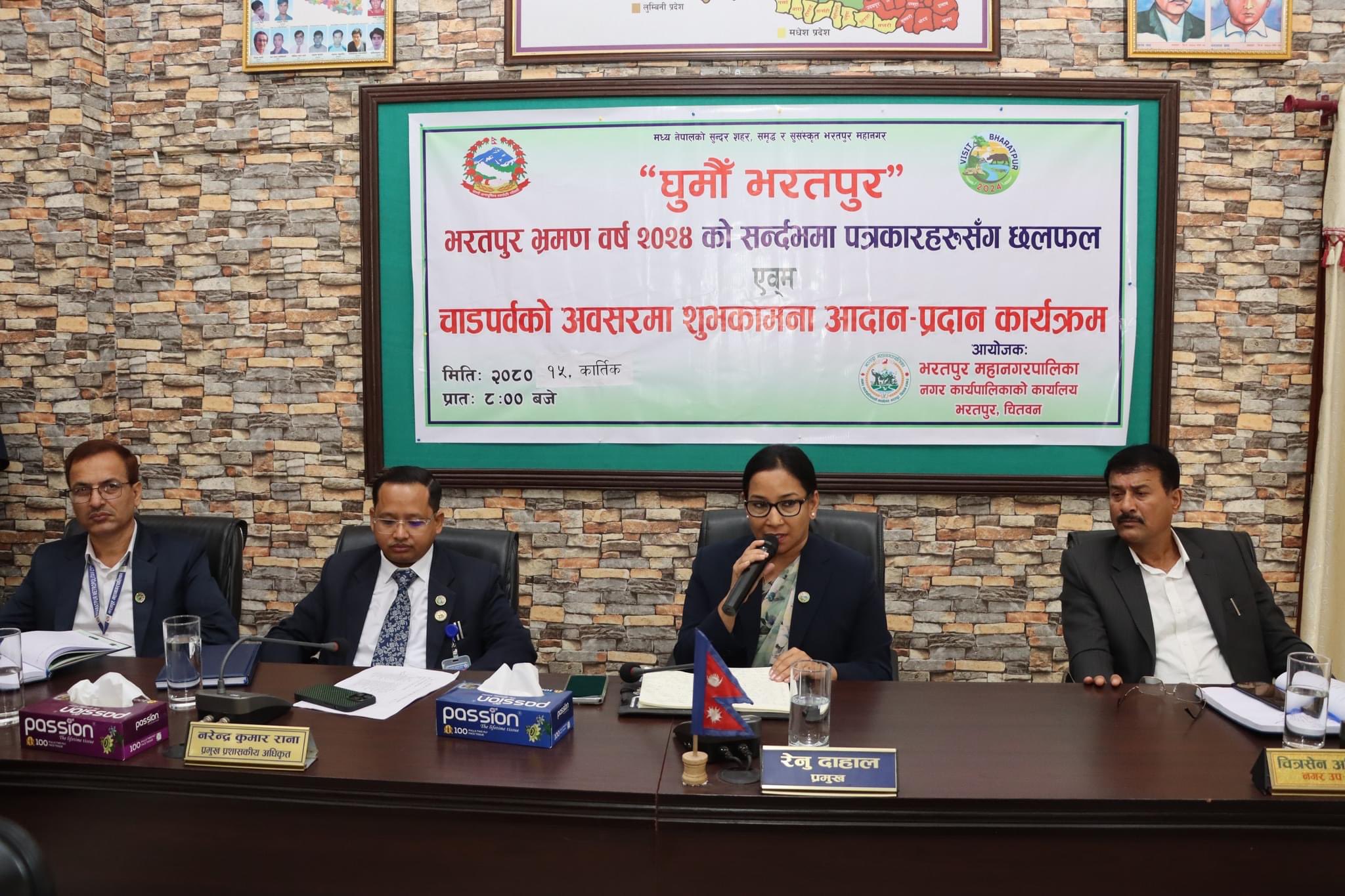बुधबार पत्रकारसँगको अन्तर्क्रियामा मेयर रेनु दाहालले ‘घुमौं भरतपुर’ अभियानअन्तर्गत सन् २०२४ लाई भ्रमण वर्षका रूपमा मनाउन लागिएको बताइन्।