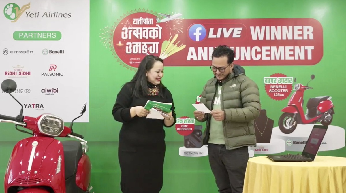 अन्तर्राष्ट्रिय नागरिक उड्डयन दिवसको अवसर पारेर यती एयरलाइन्सले फेसबुक लाइभमार्फत् गरेको 'लक्की ड्र' गरेको छ, जसमा ग्रीस्मा खनालले सिट्रोनको तर्फबाट पानारोमा बेनेली १२५ सिसीको स्कुटर प्राप्त गरेकी हुन्।