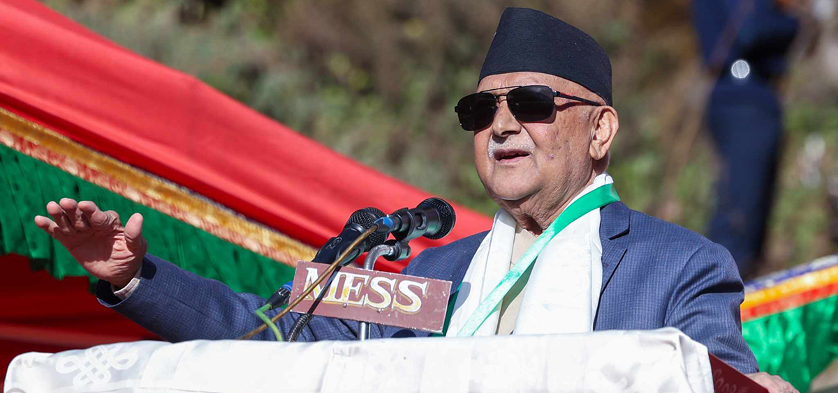 खुम्बु पासाङ ल्हामु गाउँपालिका–२ सुर्केमा आज आयोजित ङिमदोर्जी शेर्पा पर्यटन सडक उद्घाटन समारोहलाई सम्बोधन गर्दै प्रधानमन्त्री ओलीले सोलुखुम्बुजस्तो विशेष महत्वको जिल्लामा विकासका संरचनाहरूलाई थप सबल बनाइने बताए।