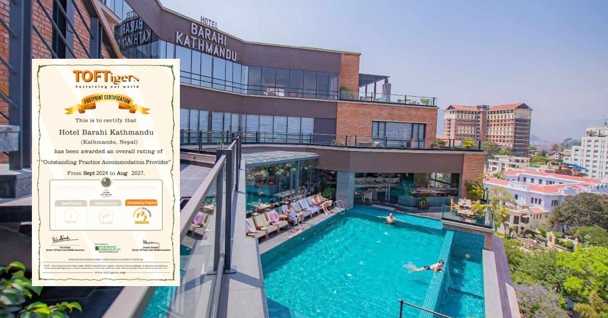 ट्राभल अपरेटर्स फर टाइगर (टफ्ट टाइगर)ले सस्टेनेबल प्राक्टिस (दिगो अभ्यास)मा उत्कृष्टता हासिल गर्ने होटल बाराही काठमाडौंलाई 'इको फुटप्रिन्ट' सर्टिफाइड गरेको छ।