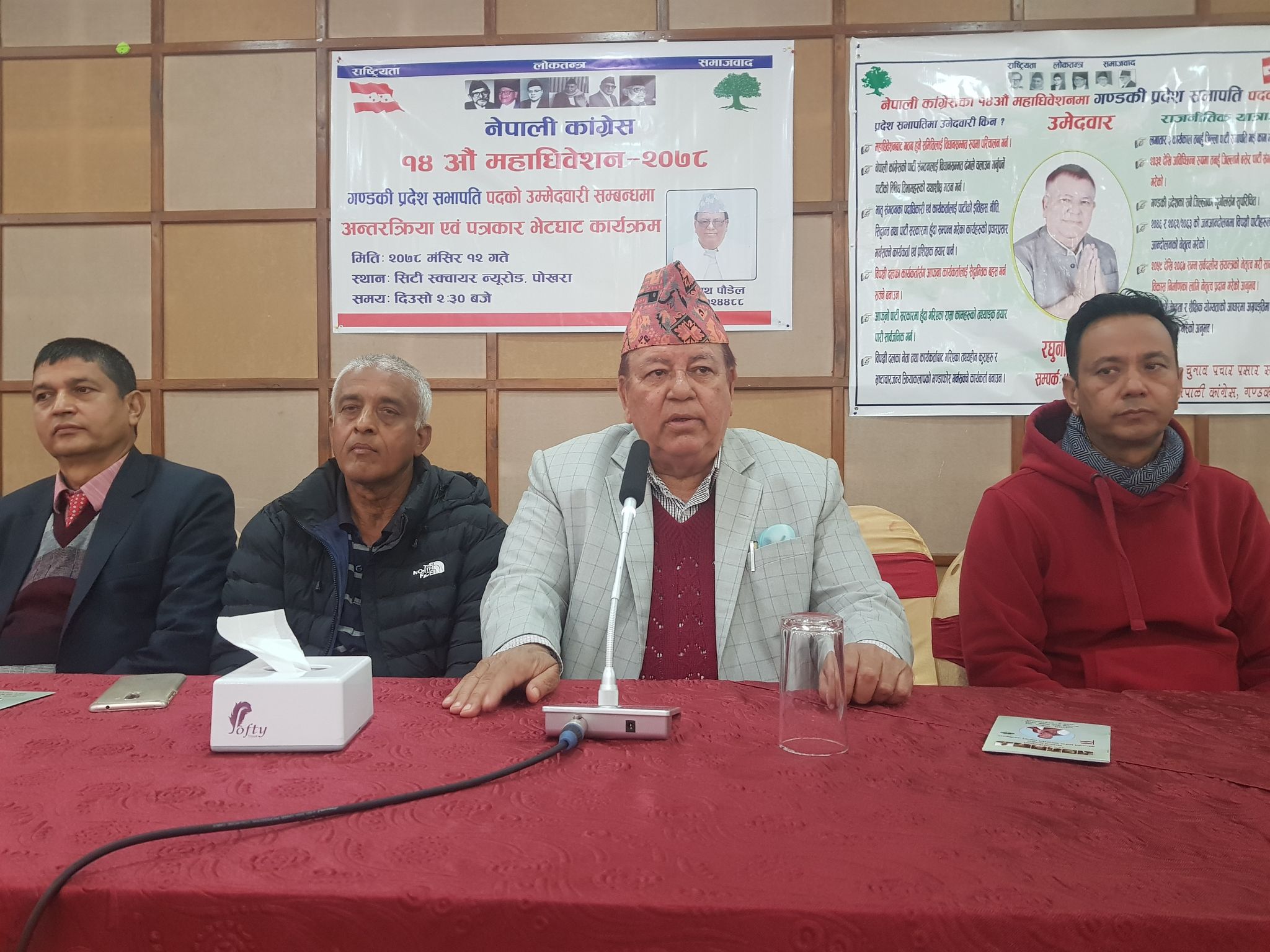 कांग्रेस बरिष्ठ नेता रामचन्द्र पौडेलको समर्थनमा आफु प्रदेश सभापतिको प्रत्यासी बनेको दाबी गर्दै उनले महामन्त्री शशांक कोइरालाले पनि समर्थन जनाउने आशा राखे।