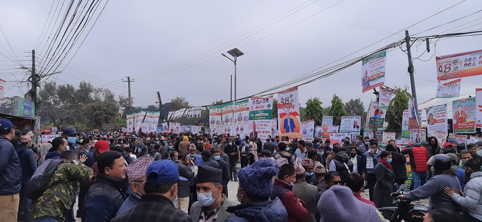 महोत्सव भित्र छिर्न बढेको हुलजस्तै प्रदर्शनी केन्द्र बाहिर कांग्रेस कार्यकर्ताको भिड लागेको छ।