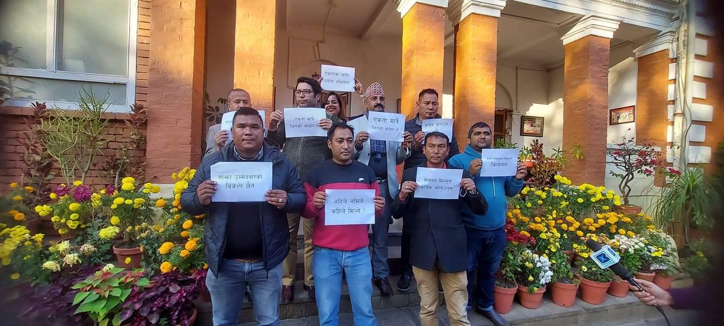 चाक्सीबारीमा भित्र पौडेल पक्षको बैठक, सर्वसम्मत उम्मेदवार छान्न बाहिर प्रदर्शन