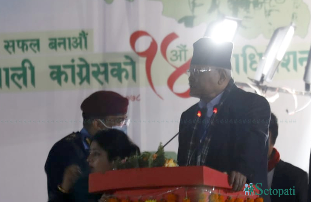 शुक्रबार कांग्रेसको १४ औं महाधिवेशनको उद्घाटनसत्रमा सम्बोधन गर्दै जय नेपालको नारालाई देशव्यापी बनाउन आफू पुनः पार्टीमा फर्किएको धारणा राखे।