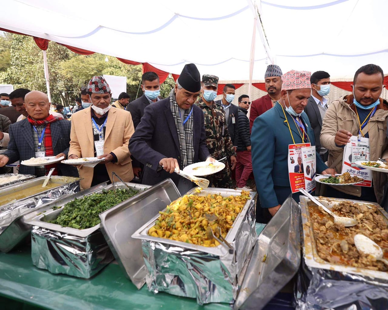 कांग्रेसको सभापतिमा उम्मेदवारी दिएका देउवाले आज भृकुटीमण्डपमा जम्मा भएका महाधिवेशन प्रतिनिधिमाझ खाना खाएका हुन्।