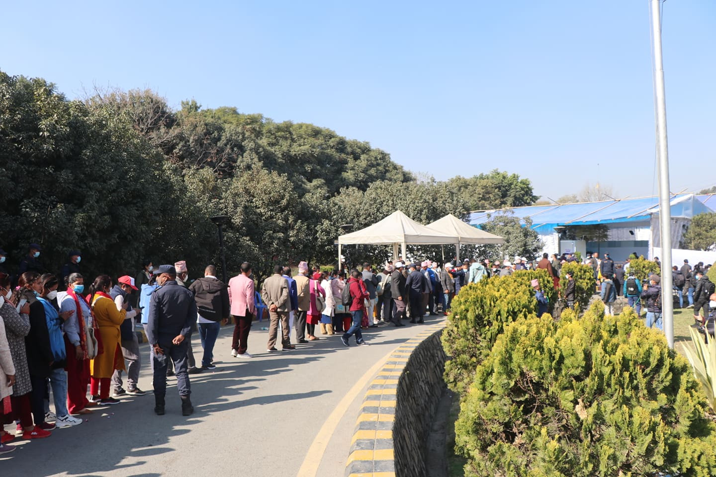 महाधिवेशन प्रतिनिधिहरू बिहान ८ बजेदेखि नै लाइनमा बसेका थिए। कांग्रेस महाधिवेशनमा चार हजार ७४३ मतदाता छन्।