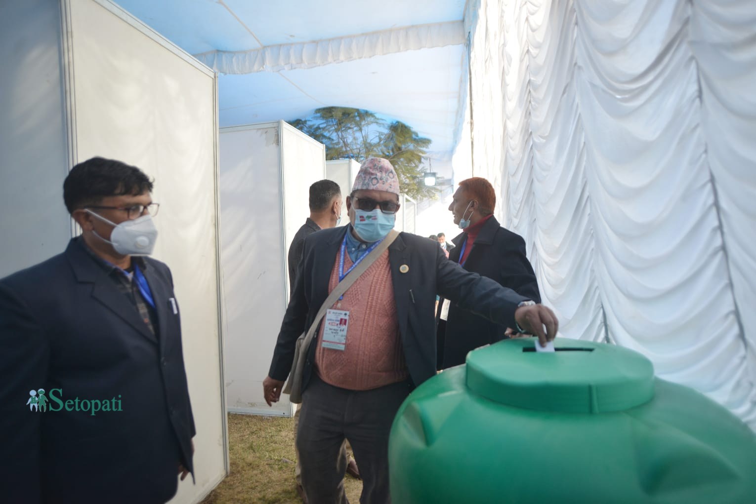 कांग्रेसले विद्युतीय भोटिङ मेसिन प्रयोग गरेको छैन। कागजी मतपत्र छन्। १२१ केन्द्रीय सदस्य र १३ पदाधिकारीका लागि निर्वाचन हुन गइरहेको छ।
