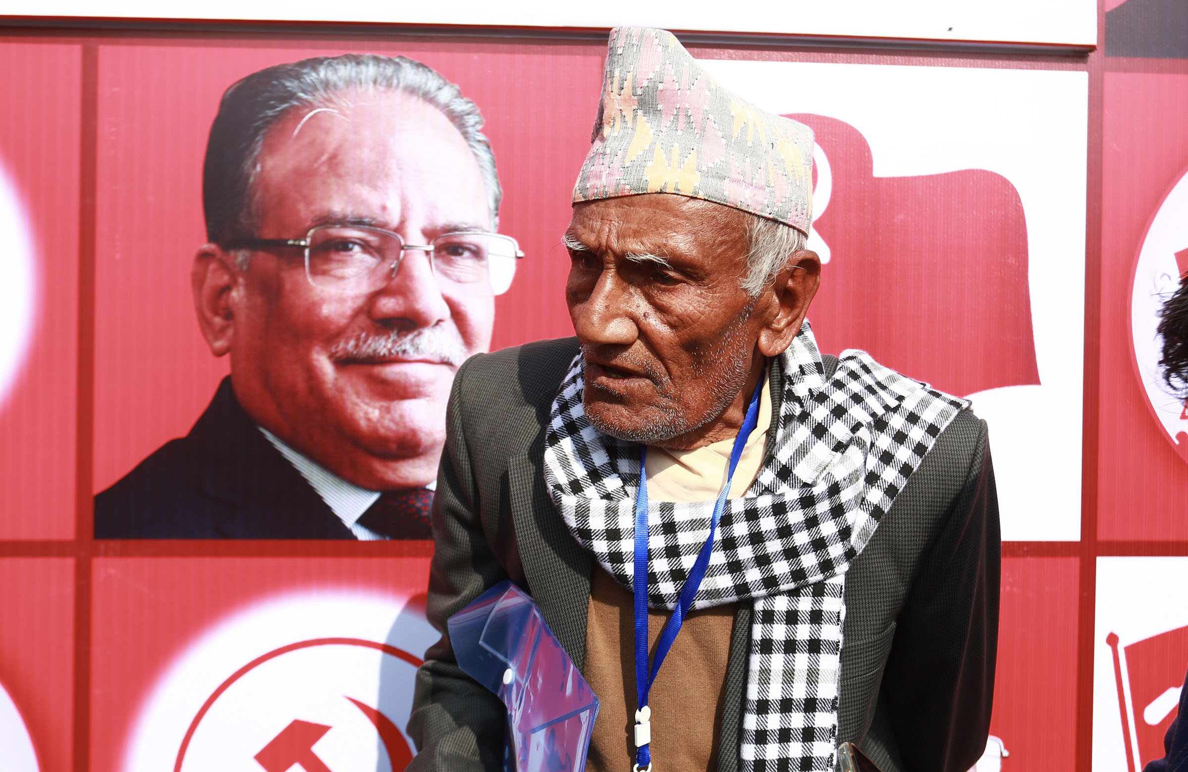 यो दृश्य नियालिरहेका हामीले उनको अगाडि पुगेर नमस्कार गर्यौं र सोध्यौं, 'बुबा तपाईं पनि महाधिवेशन प्रतिनिधि हो ?' गलामा झुण्ड्याएको कार्ड देखाउँदै उनले भने, 'हो म ज्येष्ठ कम्युनिष्ट मञ्चका तर्फबाट महाधिवेशन प्रतिनिधि।'
