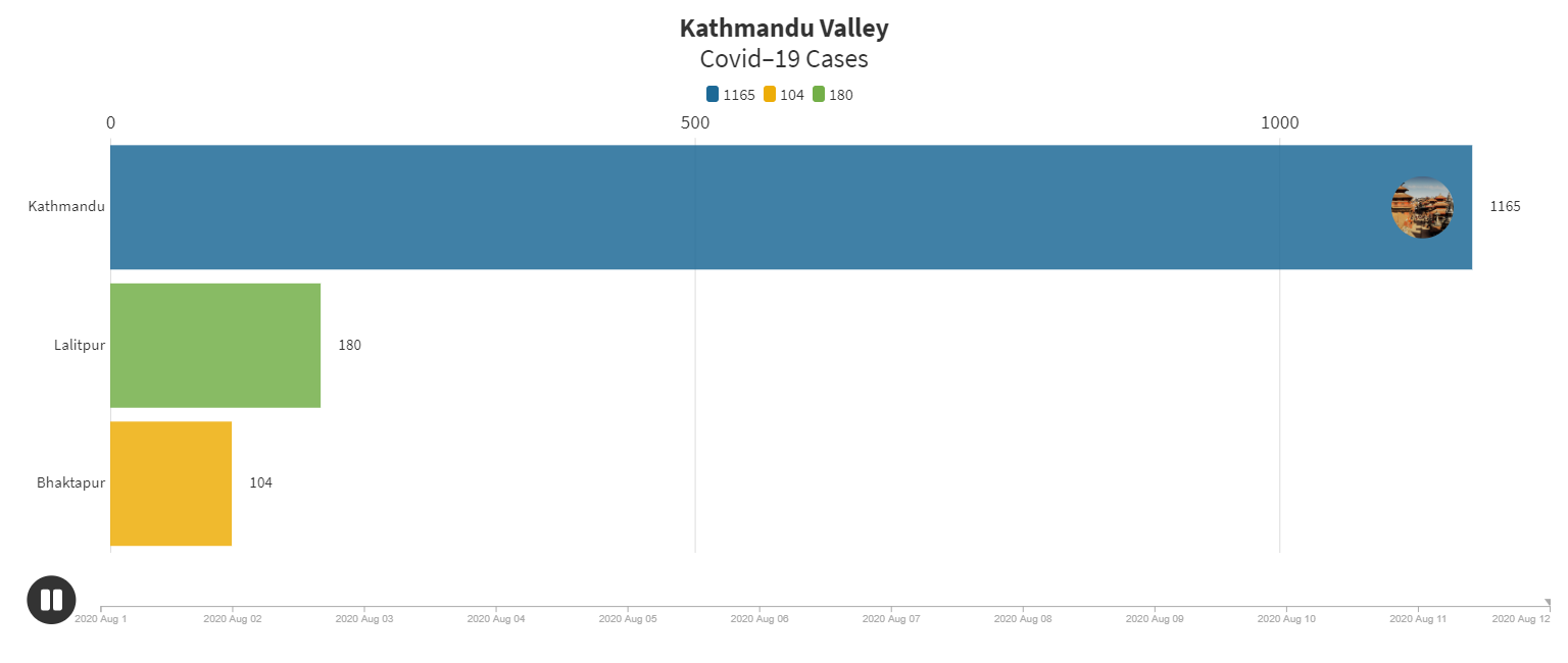 गत साउन १७ गते काठमडौंमा ४ सय २८, भक्तपुरमा ५८ र ललितपुरमा ९५ संक्रमित भेटिएका थिए। तर साउन २८ गतेसम्म आइपुग्दा काठमाडौंमा संक्रमितको संख्या झण्डै तेब्बरले वृद्धि भएर एघार सय ६५ पुगेको छ।