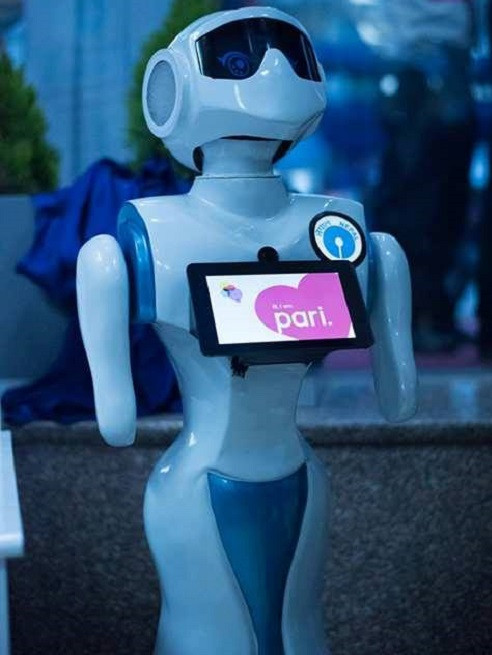 एसबिआइ बैंकमा राखिएको रोबोट 'परी'। तस्बिर सौजन्यः पाइला टेक्नोलोजी