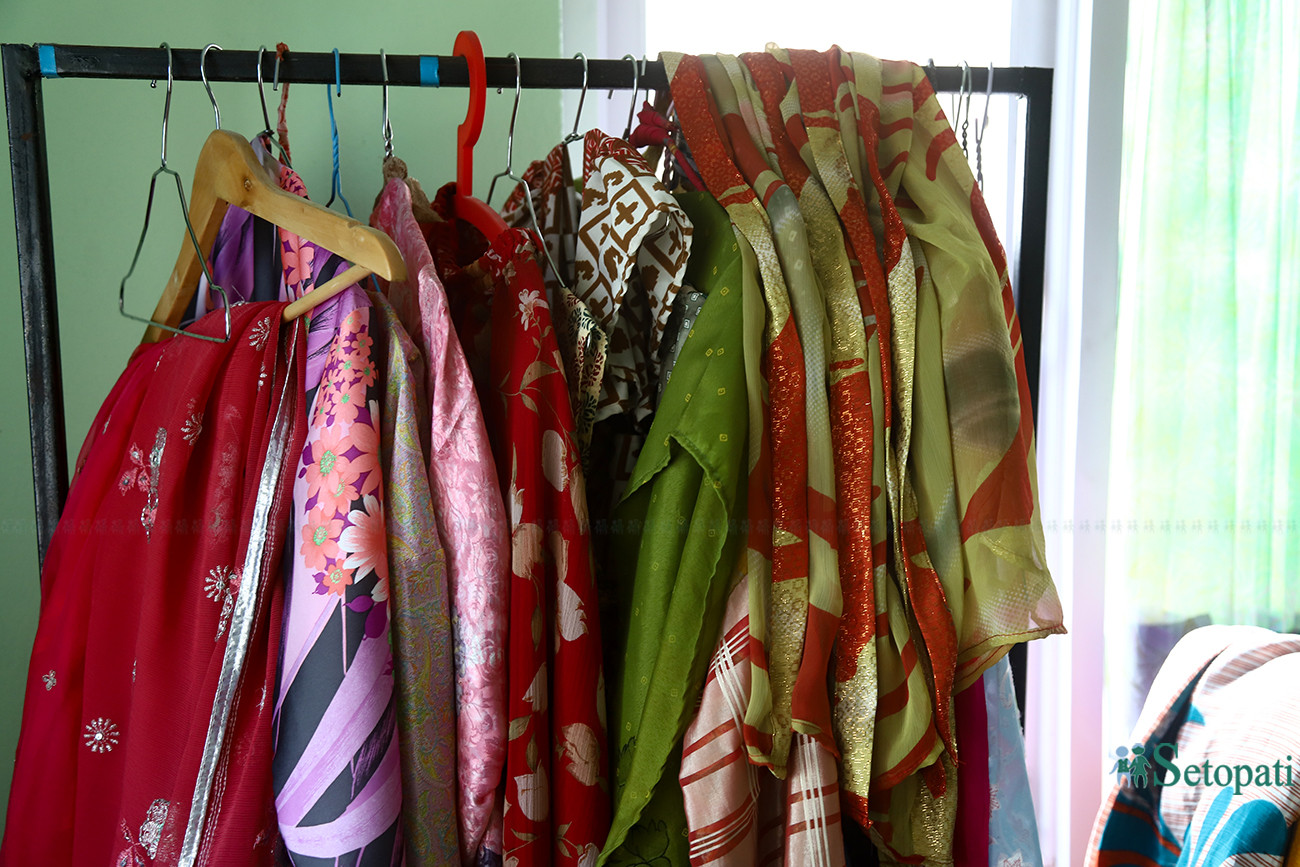 यही योजना थियो– पुराना सारीलाई पुनः प्रयोगमा ल्याउने। पुराना सारीबाट नयाँ उत्पादन बनाएर महिलाहरूलाई संस्थामा जोड्न सकिन्थ्यो, वातावरण सन्तुलनमा थोरै भए पनि टेवा पुग्थ्यो।