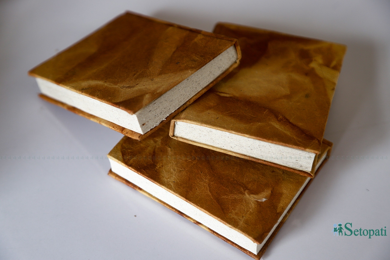 हात्तीको गोबरबाट बनेका कागजका डायरी। तस्बिरः निशा भण्डारी/सेतोपाटी