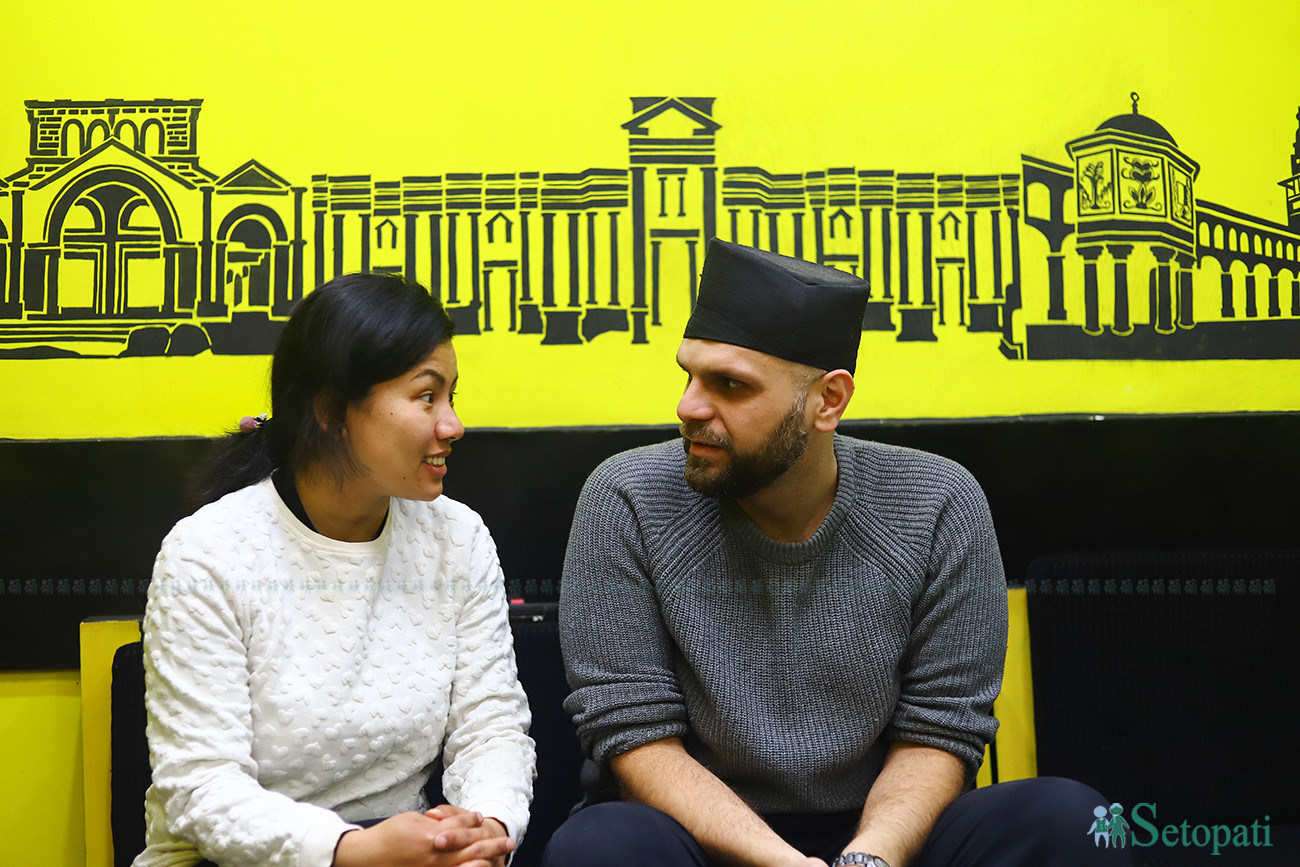 बेसल र संगीता ताजा रेस्टुरेन्टमा। तस्बिरः निशा भण्डारी/सेतोपाटी