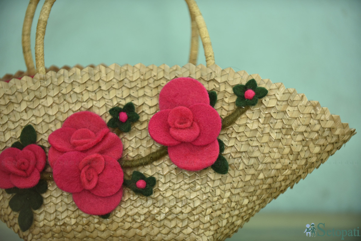 चिनियाँले पठाएको डिजाइनअनुसार नै झोला बनाउनुपर्छ। मकैको खोस्टाबाट बन्ने झोलामा राखिने फूलबुट्टा भने नेदरल्यान्ड्सबाट आउँछ। यो बुट्टा नेपालमै पनि बन्छ। तर चिनियाँको मागअनुसार आयात गर्नुपरेको उनी बताउँछिन्।
