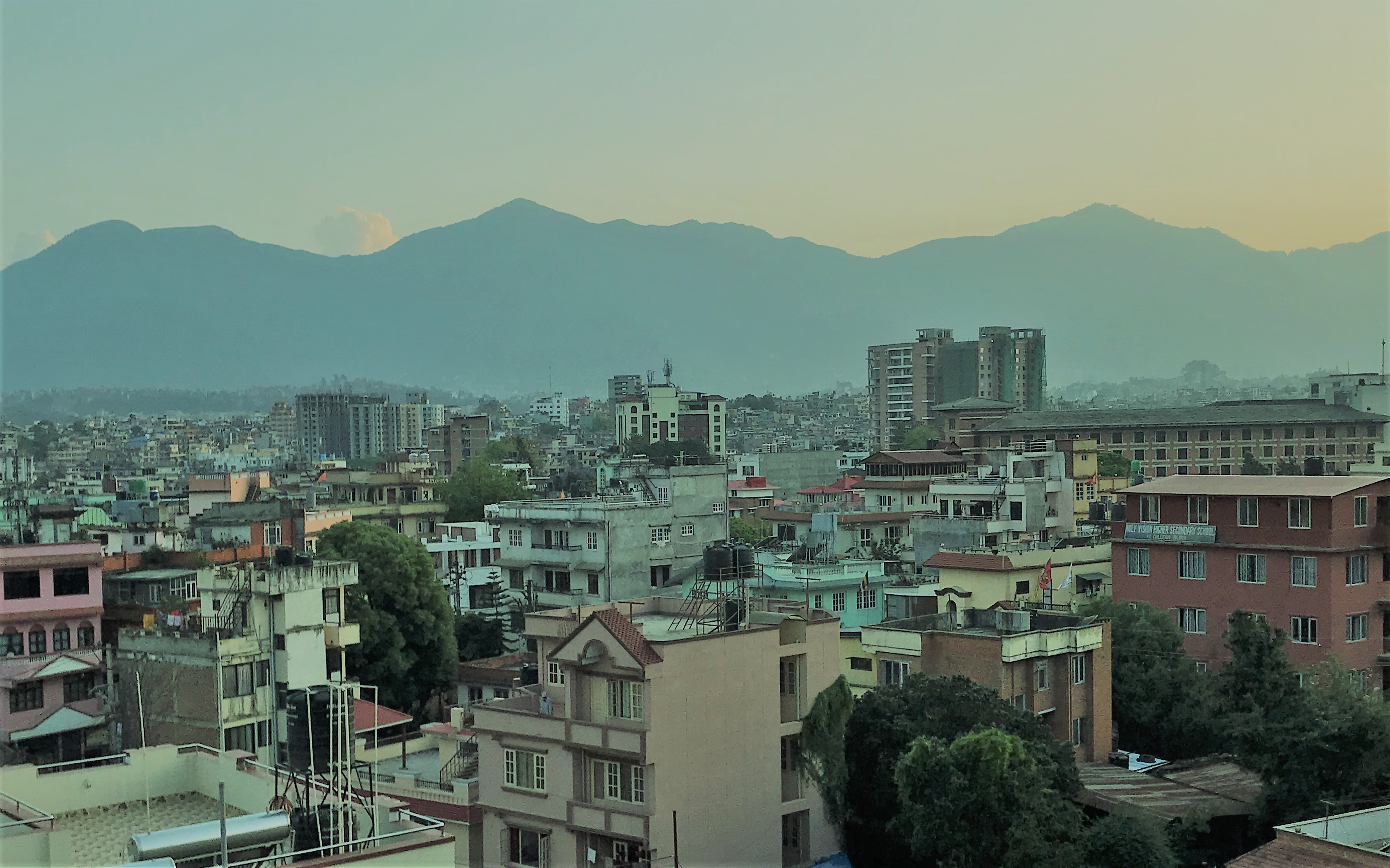 सन् १९७५ मा मेरो घरबाट देखिने ताहाचल। पृष्ठभूमिमा तत्कालीन सेतो सोल्टी होटल।