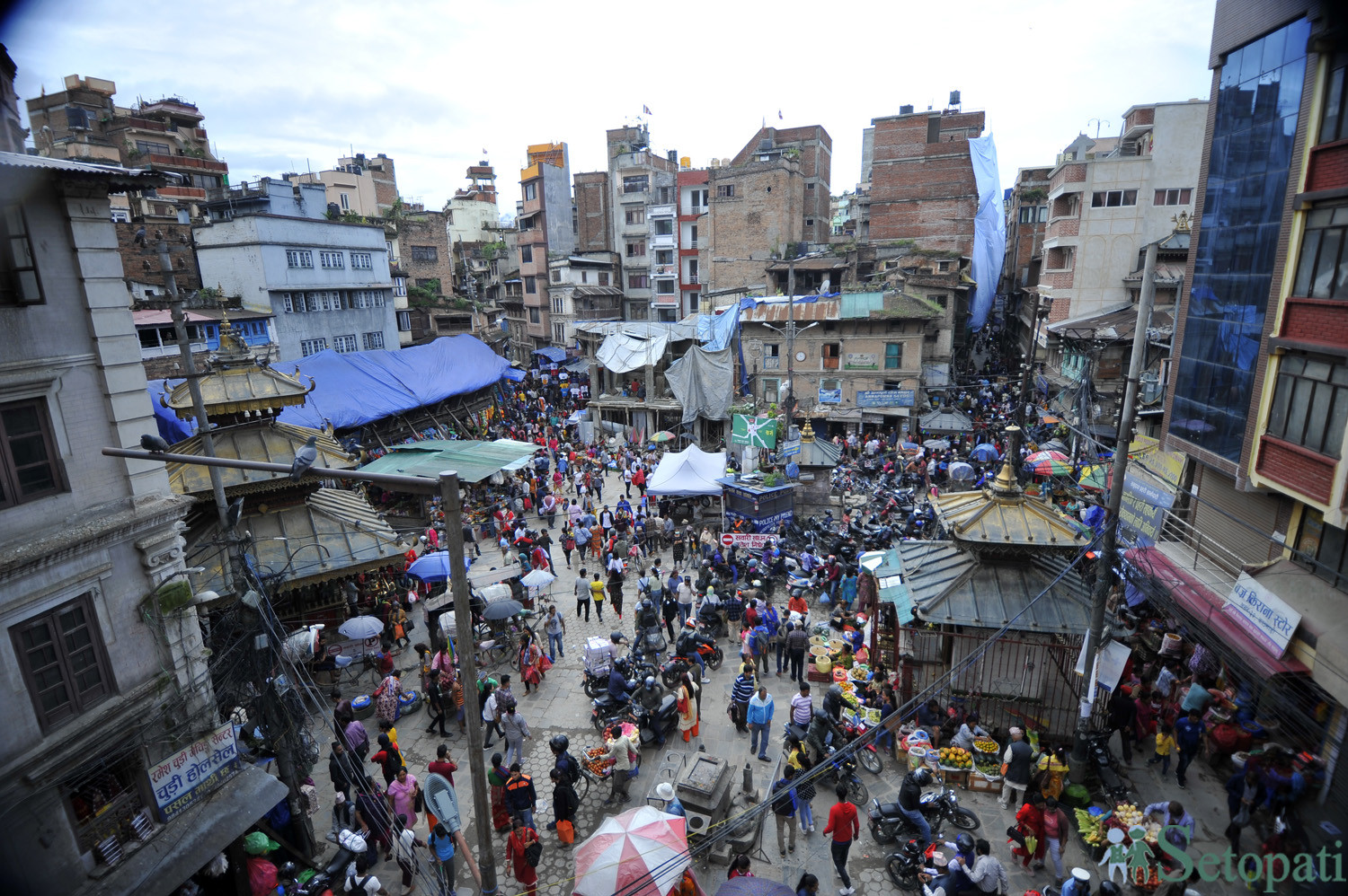 मध्यसहरको व्यस्त असन बजार। तस्बिर: नारायण महर्जन/सेतोपाटी