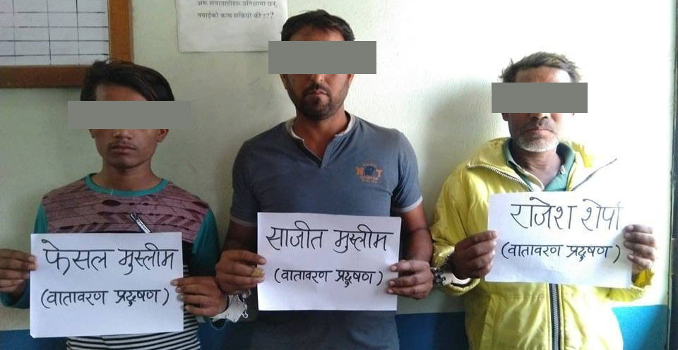 त्यसको भोलिपल्ट छातीमा 'वातावरण प्रदूषण' भन्ने अभियोगसहित भारतीय नागरिक फैशल मुश्लिम, शालिम मुश्लिम र राजेश शेर्पाको फोटो सार्वजनिक भयो। प्रहरीले तीनै जनालाई कारवाहीका लागि स्थानीय निकाय ललितपुर महानगरपालिकालाई बुझायो।