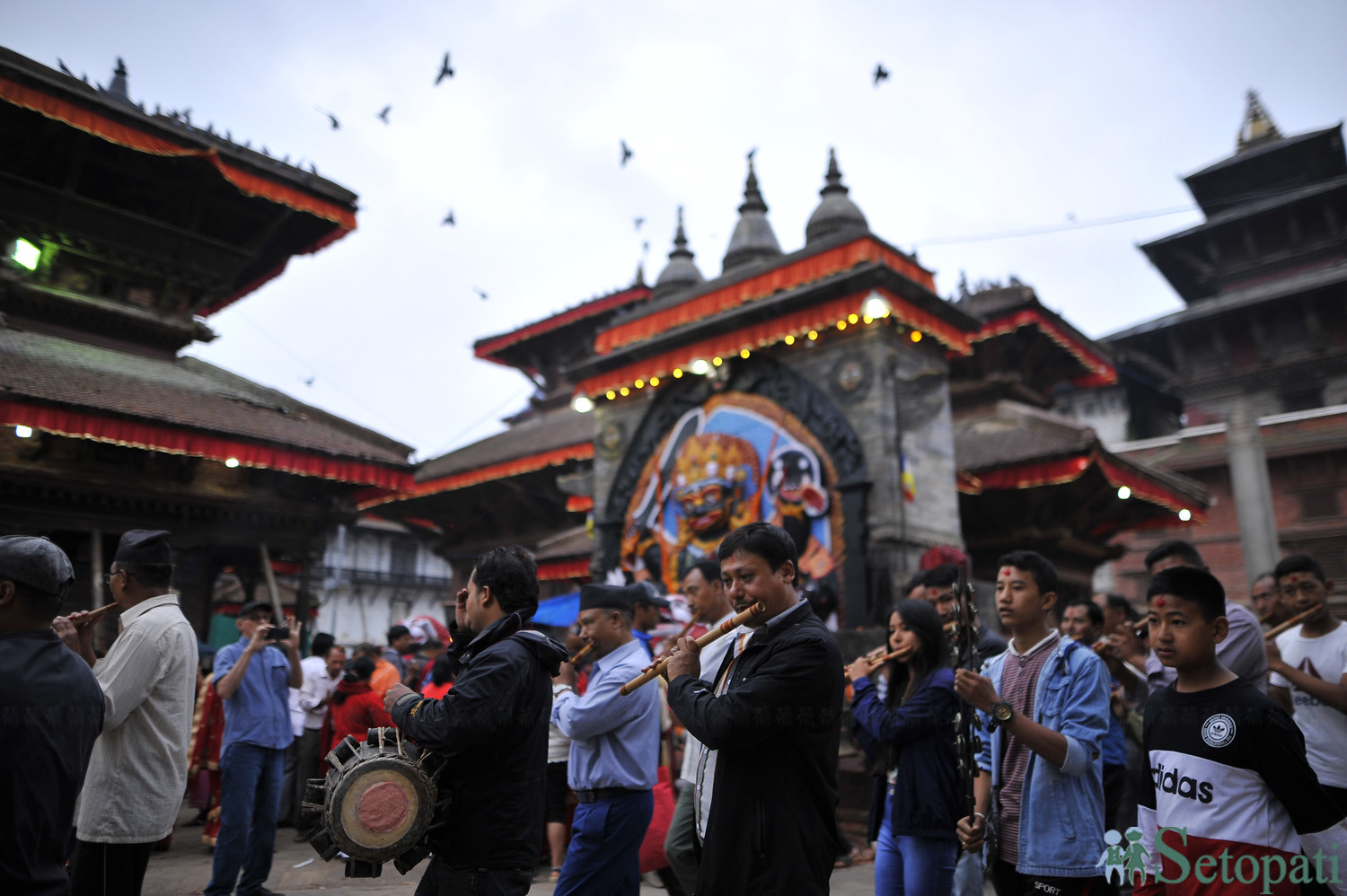 अगं:छेँ (आँगन देउताको घर) मा बजेको डमरूको डमडम। लाखे अघिपछि बजेका धिमे- धाना तिका नाका धिना छ्याइँ ...। यसमा केटाकेटीको कौतूहल भरिएको डरयुक्त स्वाँस्वाँ। टोल-टोलका पाटीमा भजन मण्डलीले बिहान बजाउने र दिउँसो, साँझ रेडियोमा अहोरात्र बज्ने मालश्री धुनको संगीत भएर आउँथ्यो दसैं। पहाड र मधेसबाट आएकाहरू काठमाडौंलाई यहाँका रैथानेहरूको जिम्मा लगाएर गएपछि यहाँका सडकमा चकमन्न भएर छाउँथ्यो दसैं।