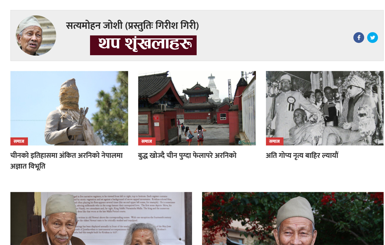 (सेतोपाटीमा लामो समय शृंखलाबद्ध प्रकाशित 'सत्यमोहन जोशीको आत्मकथा शृंखला' बाट। उक्त शृंखला गिरीश गिरीले लेखेका हुन्।)