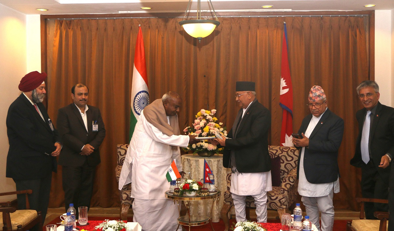 प्रधानमन्त्री केपी शर्मा ओली र भारतका पूर्वप्रधानमन्त्री एचडी देवेगौडाबीच शिष्टाचार भेटवार्ता भएको छ ।