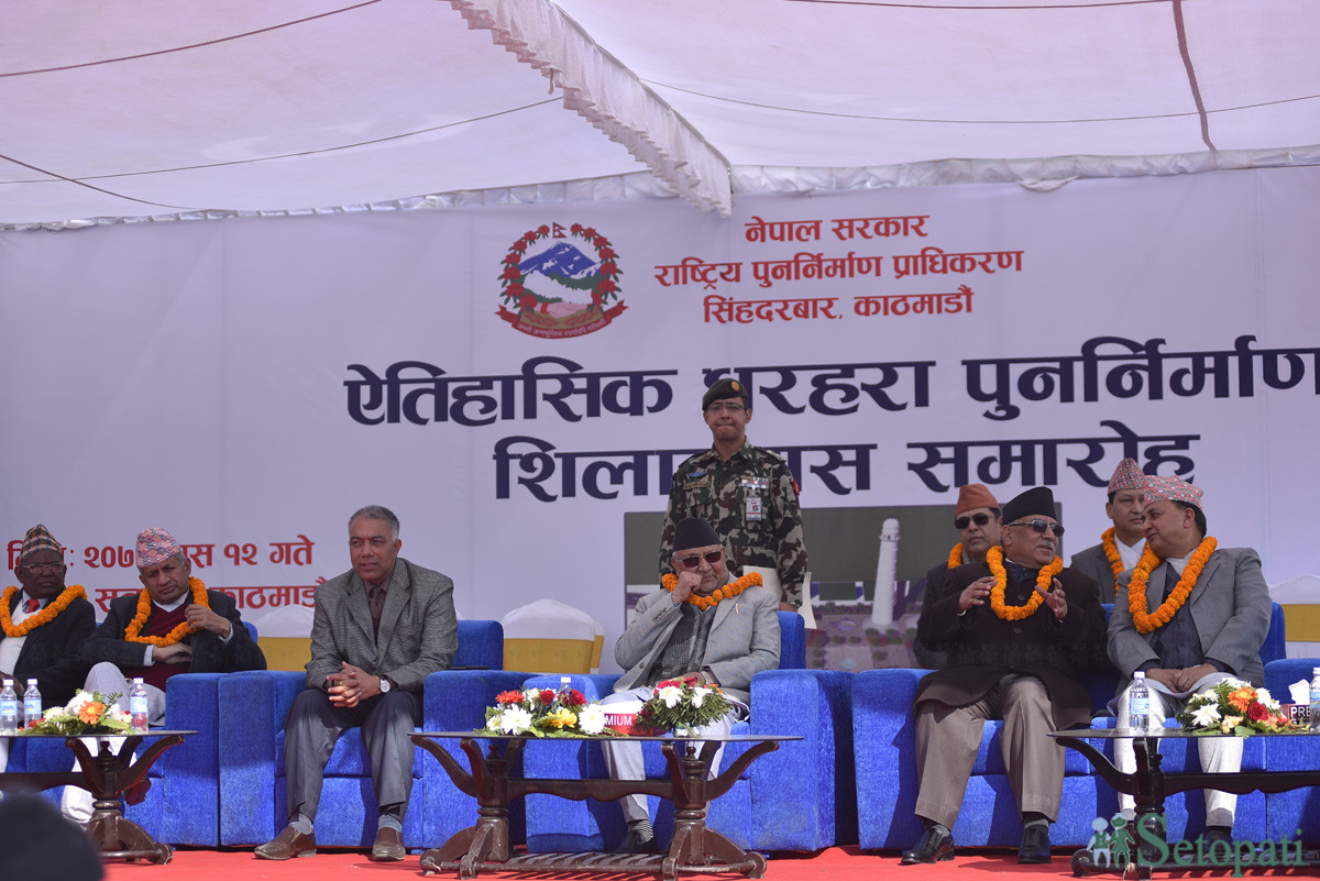 ‘देशमै विकासको नयाँ लहर अगाडि बढेको छ। त्यसको एक हिस्सा धरहरा पनि हो। हरेक कुराको आधुनिकीकरण जो चलेको छ। त्यसको यो एक अंग हो, धरहरा,’ बिहिबार धरहरा शिलान्यास गर्दै प्रधानमन्त्री ओलीले भने, ‘इतिहास झल्किदा आधुनिकता पनि त्यसमा टल्किनुपर्छ। धरहरा पनि त्यस्तै हो। इतिहास झल्किन्छ। आधुनिकता पनि टल्किन्छ।’