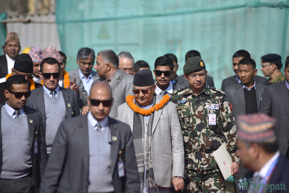 प्रधानमन्त्री ओलीले भने, ‘अबको धरहरामा घुमे, धरहरामा चढे भने बाटो जाम हुँदैन। पहिले कतै गाडी राख्ने ठाउँ हुँदैन थियो। त्यो प्रकारको समस्या अब हुँदैन। धरहराले घुम्न आउनेलाई आफ्नै खल्तीमुनि राख्छ।’