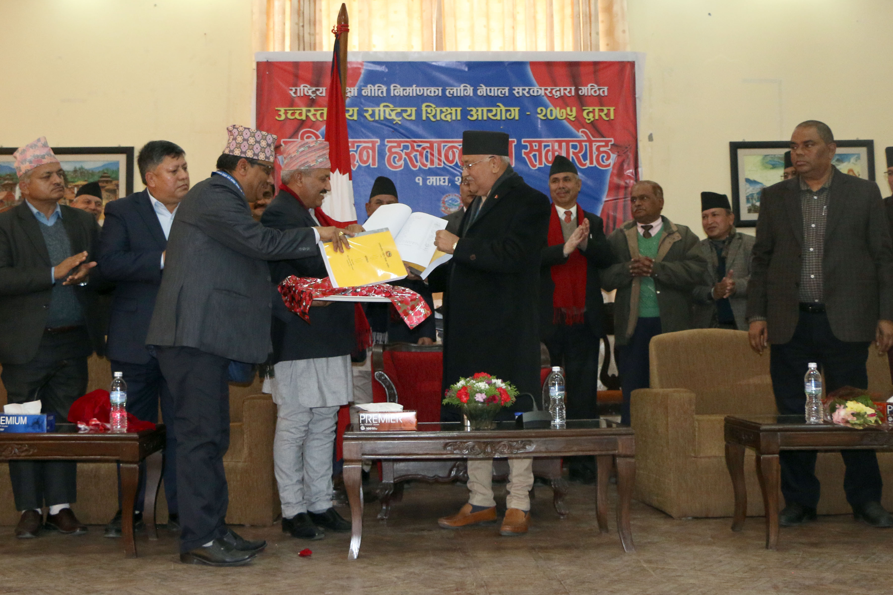 आयोगका अध्यक्ष तथा शिक्षामन्त्री गिरिराजमणि पोखरेलले बालुवाटारमा आयोजित कार्यक्रममा प्रधानमन्त्री केपी शर्मा ओलीलाई प्रतिवेदन हस्तान्तरण गरेका हुन्। गत असार ३२ गते गठित २५ सदस्यीय आयोगले पाँच महिना सात दिन लगाएर उक्त प्रतिवेदन तयार पारेको हो।