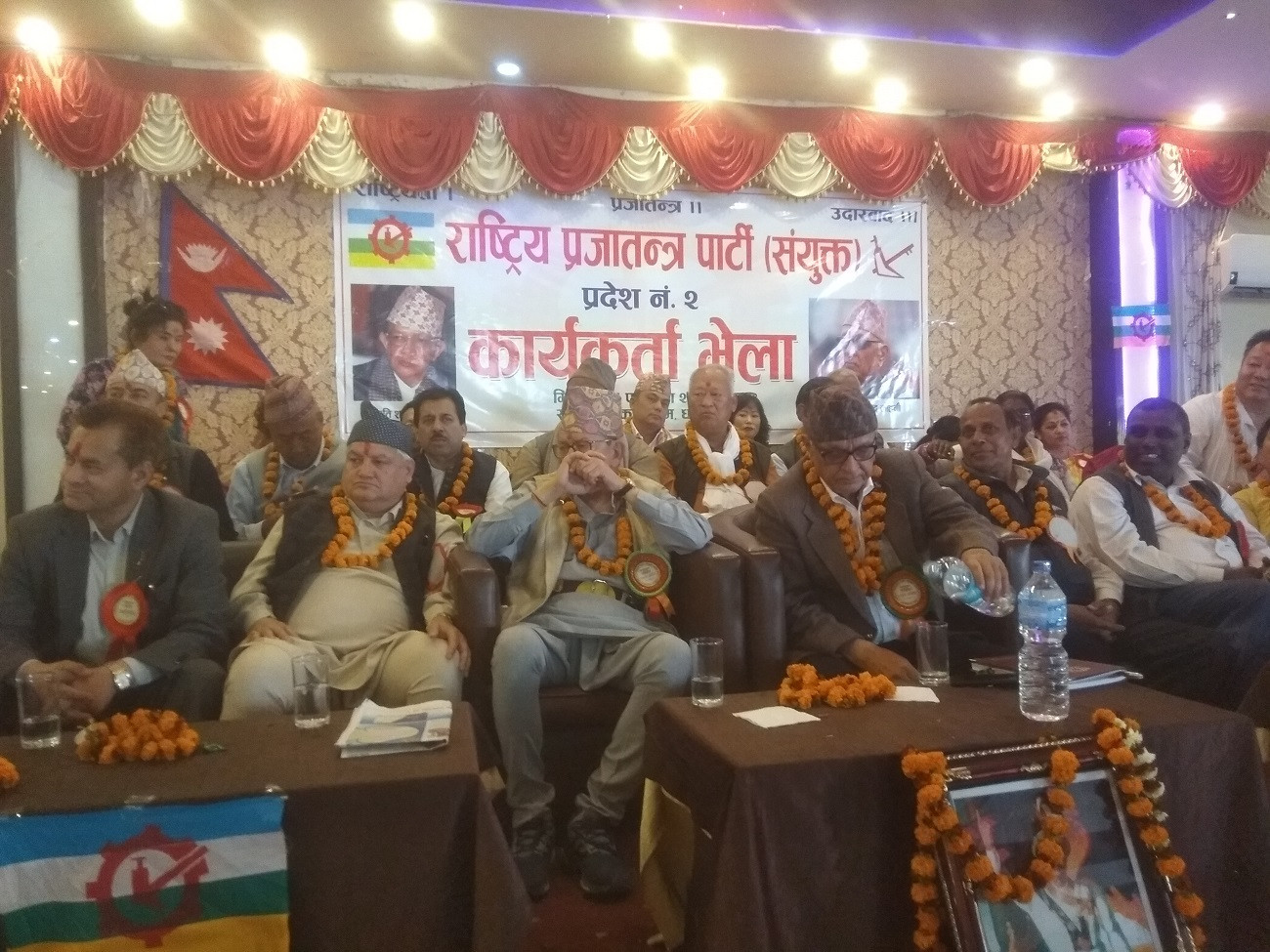 राष्ट्रिय प्रजातन्त्र पार्टी (संयुक्त)का अध्यक्षद्वय जनकपुरधाममा आयोजित कार्यकर्ता भेलामा वर्तमान सरकारविरूद्ध आक्रामक रूपमा प्रस्तुत भएका छन्।