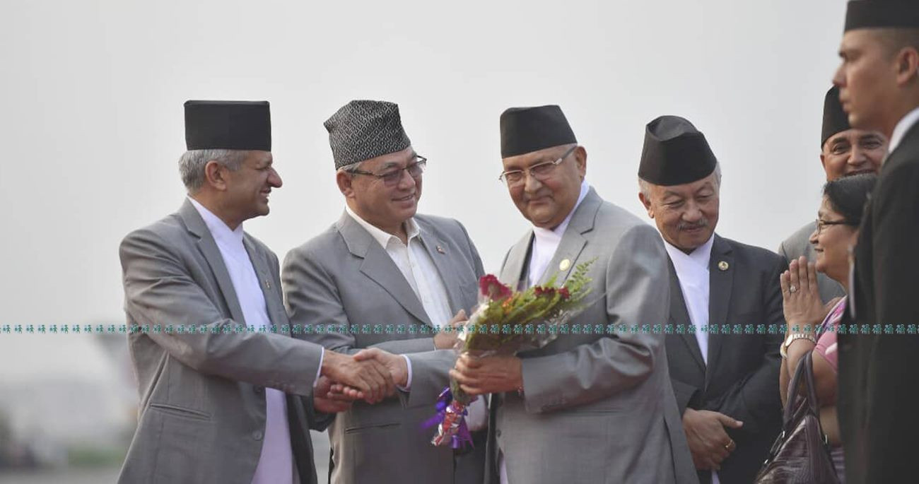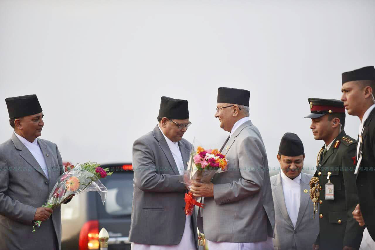 दुई दिने भारत भ्रमणपछि फर्किएका उनले त्रिभुवन विमानस्थलमा संचारकर्मीहरुसँग भने कुनै प्रतिक्रिया दिएनन्। प्रधानमन्त्री ओलीलाई प्रतिनिधिसभाका सभामुख कृष्णबहादुर महरा, उपप्रधानमन्त्री एवम् रक्षामन्त्री ईश्वर पोखरेल, गृहमन्त्री रामबहादुर थापा, पूर्व सभामुख सुवाष नेम्वाङलगायतले त्रिभुवन अन्तराष्ट्रिय विमानस्थलमा स्वागत गरे।