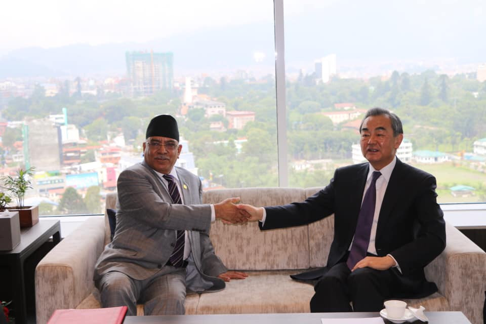 सत्तारूढ नेपाल कम्युनिष्ट पार्टी (नेकपा) का अध्यक्ष पुष्पकमल दाहाल ‘प्रचण्ड’ र नेपाल भ्रमणमा रहेका चिनियाँ विदेशमन्त्री वाङ यीबीच भेटवार्ता भएको छ।