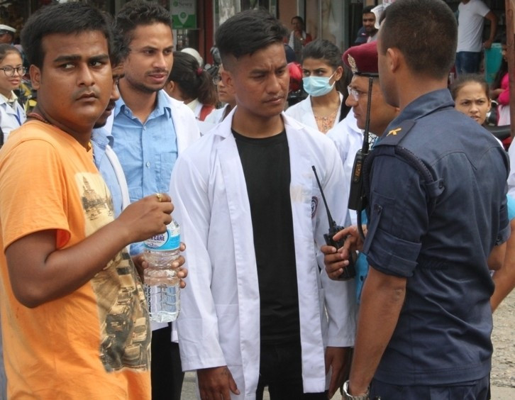 नेत्रविक्रम चन्द ‘विप्लव’ नेतृत्वको नेपाल कम्युनिष्ट पार्टी समर्थित जनस्वाथ्यकर्मी महासंघका महासचिव प्रकाश चन्दसहितका विद्यार्थीहरू पक्राउ परेका छन्।
