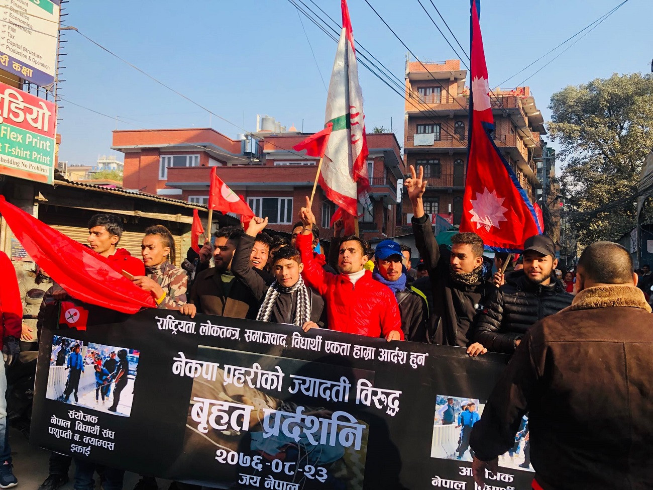 प्रहरीले रबरका गोली, अश्रुग्यास र लाठी प्रहार गरेर विद्यार्थीलाई घाइते बनाएको भन्दै नेविसंघले विरोध गरेको हो।