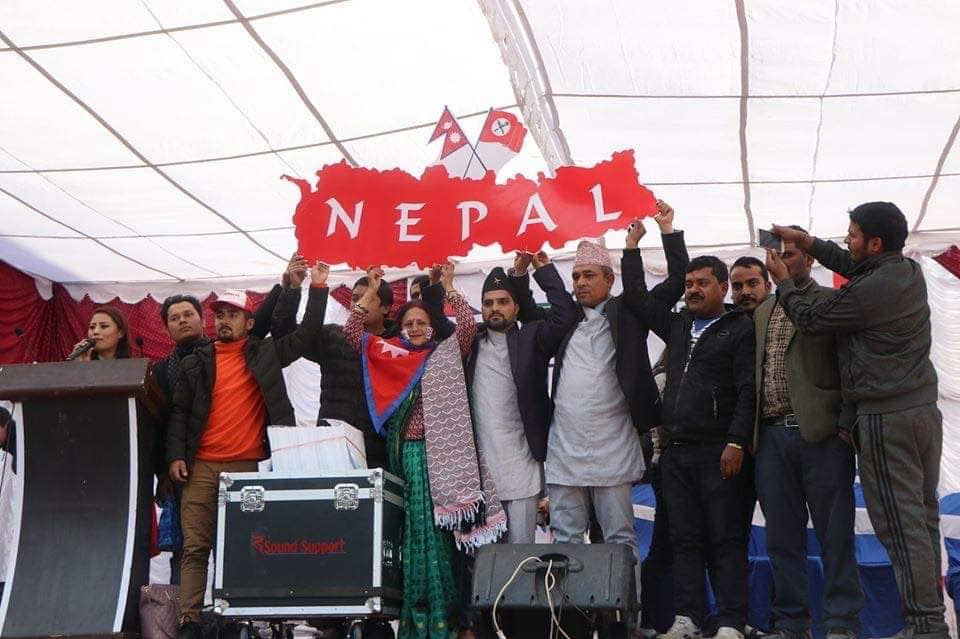 ‘चिनौं सीमाना जोगाऔं माटो’ अभियान सञ्चालन गरेको नेविसंघले सोमबार काठमाडौंको बसन्तपुरमा कार्यक्रम गरी नक्सा प्रदर्शन गरेको हो।