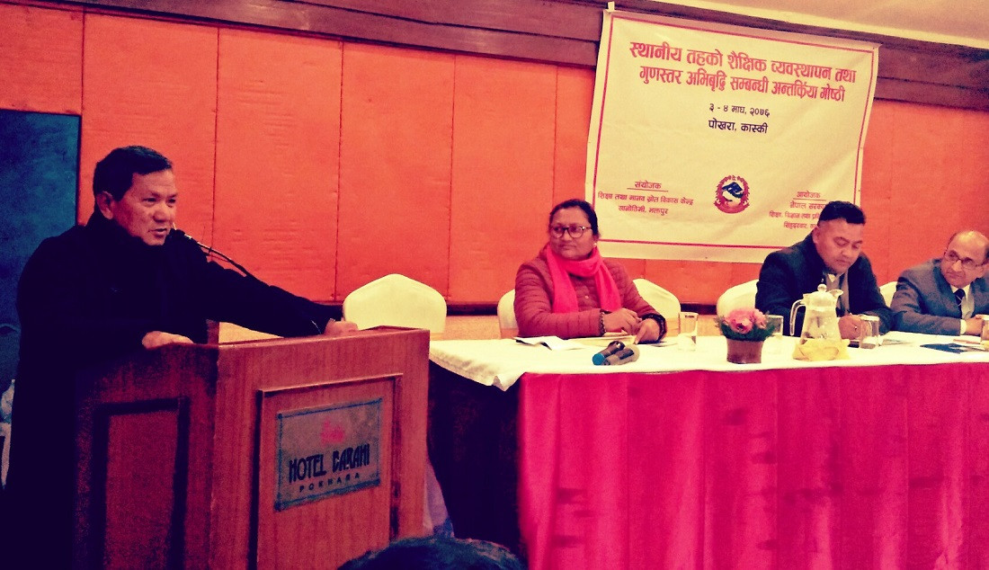शिक्षा, विज्ञान तथा प्रविधि मन्त्रालयले शुक्रबार पोखरामा आयोजना गरेको स्थानीय तहको शौक्षिक व्यवस्थापन तथा गुणस्तर अभिवृद्धी सम्बन्धी कार्यक्रममा बोल्दै गुरुङले घुमाउरो पारामा शिक्षामन्त्री परिवर्तन गर्नुपर्ने बताए।