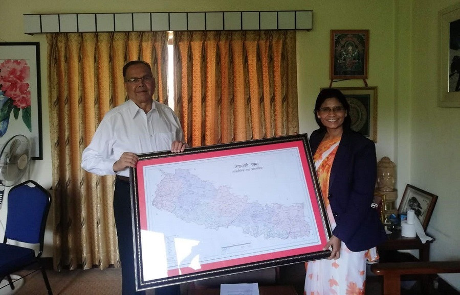 यसअघि उनले राष्ट्रपति विद्या भण्डारी, उपराष्ट्रपति नन्दबहादुर पुन, प्रधानमन्त्री केपीशर्मा ओली, प्रमुख बिपक्षी दल नेपाली कांग्रेस सभापति शेरबहादुर देउवा, नेकपा अध्यक्ष पुष्पकमल दहाल प्रचण्ड लगायतलाई नक्सा हस्तान्तरण गरेकी थिइन्।