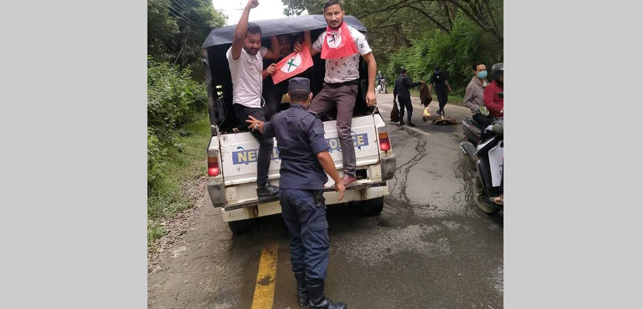 त्रिविमा सत्तारूढ नेपाल कम्युनिष्ट पार्टी नेकपाका कार्यकर्ता भर्ती गरेको, छ महिना हुँदासमेत पठनपाठन र स्थगित परीक्षाबारे निकास ननिकालेको तथा नेविसंघ कार्यकर्तालाई झूटा मुद्दा लगाएकोलगायत विरोधमा प्रदर्शनमा उत्रिएकालाई प्रहरीले नियन्त्रणमा लिएको हो।