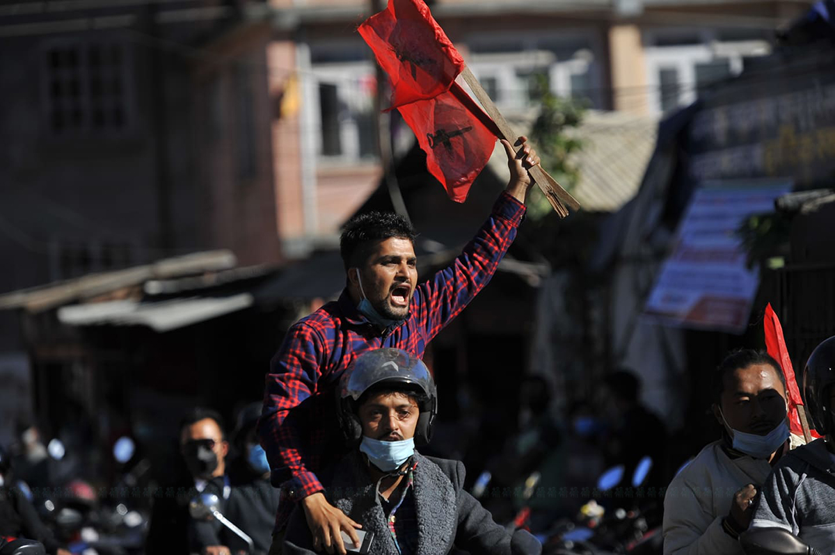 आफ्ना कार्यकर्तालाई प्रहरीले पक्राउ गर्दै झूटा मुद्दा लगाएको र कोरोना पीडितप्रति सरकार उदासिन देखिएको विरोधमा नेविसंघले प्रदर्शन गरेको हो।