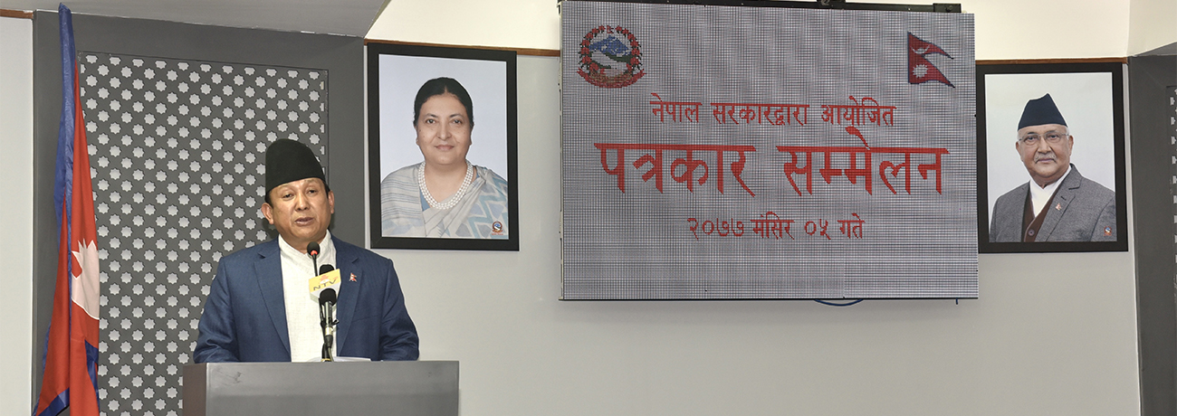 शुक्रबार पत्रकार सम्मेलनमार्फत् सञ्चार तथा सूचना प्रविधिमन्त्री एवं सरकार प्रवक्ता पार्वत गुरुङले गत कात्तिक २७ र मंसिर ३ गते बसेको मन्त्रिपरिषद् बैठकका निर्णय सार्वजनिक गरेका हुन्।