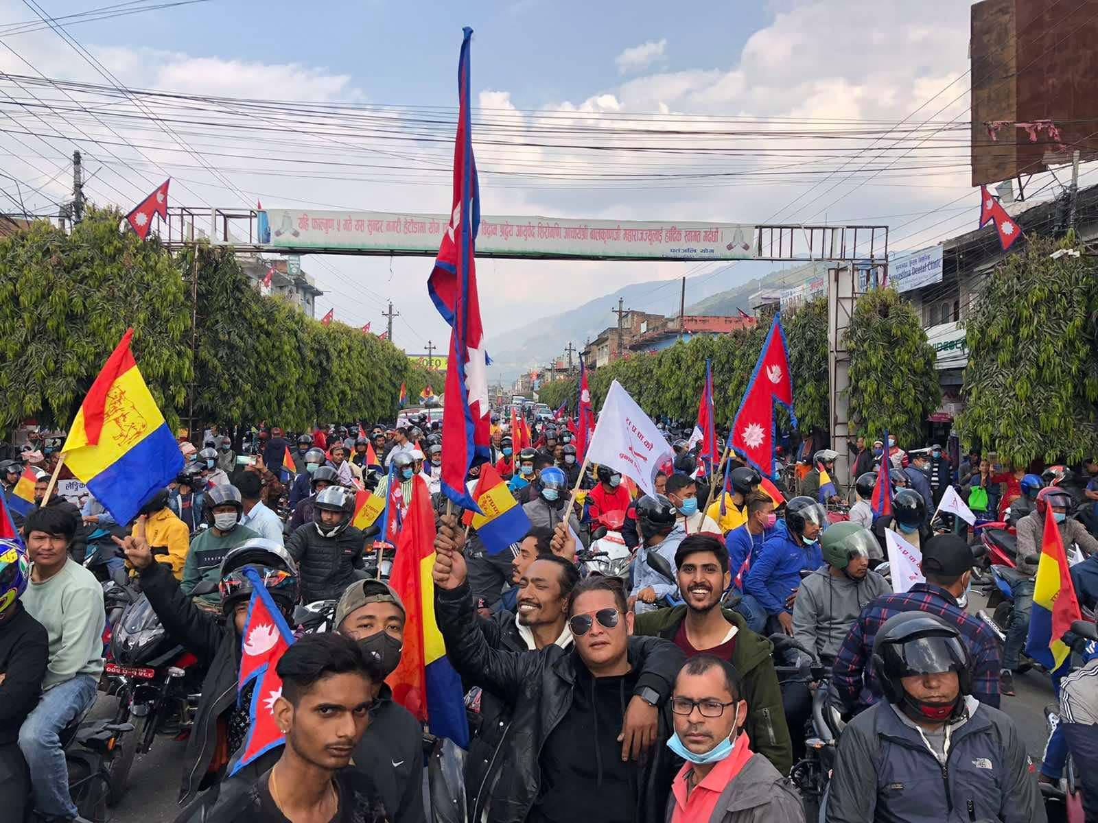 राष्ट्रिय प्रजातन्त्र पार्टी मकवानपुरले राजसंस्था र हिन्दु राष्ट्रको माग गर्दै शुक्रबार हेटौंडामा मोटरसाइकल र्याली प्रदर्शन गरेको छ।
