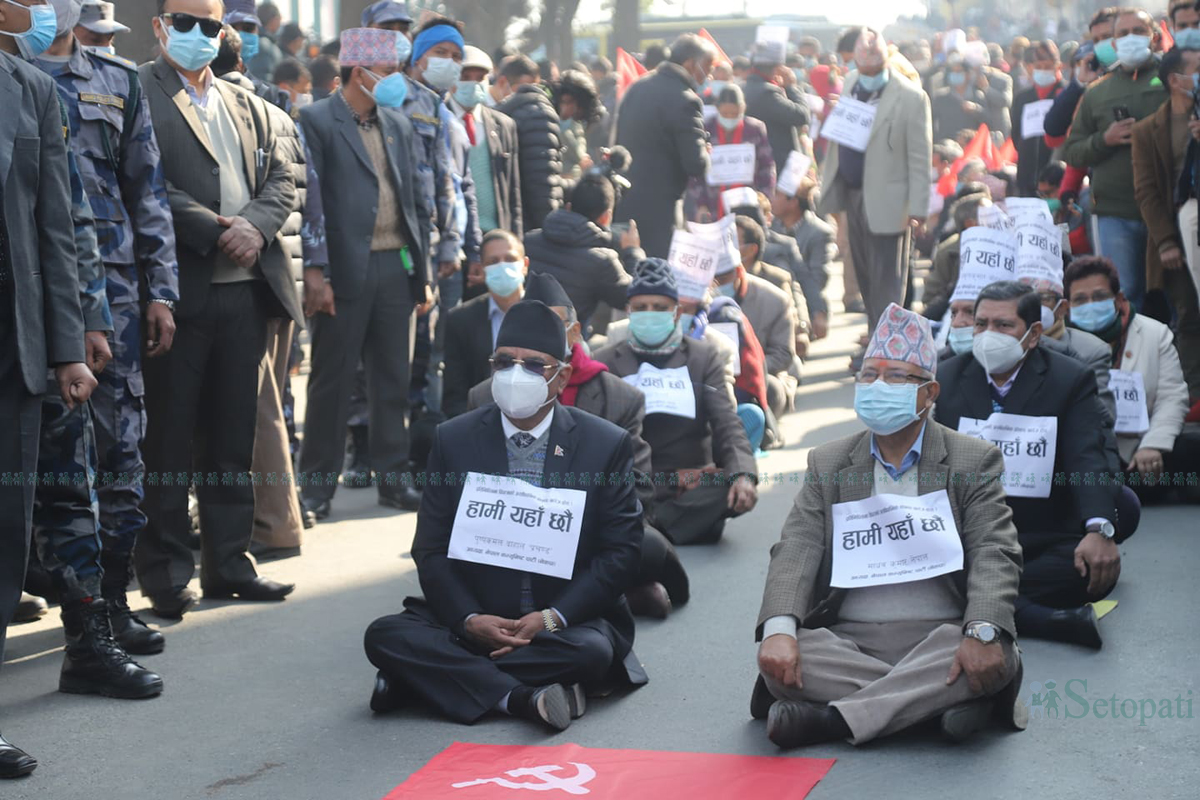 शुक्रबार बिहान ९:३० बजेदेखि अध्यक्ष पुष्पकमल दाहाल 'प्रचण्ड' र माधवकुमार नेपाल समूहले माइतीघरमा प्रदर्शन गरेका हुन्।